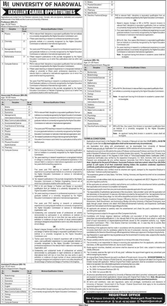 If teaching isn’t your thing, don’t worry! The University of Narowal is also offering a variety of administrative and technical roles.