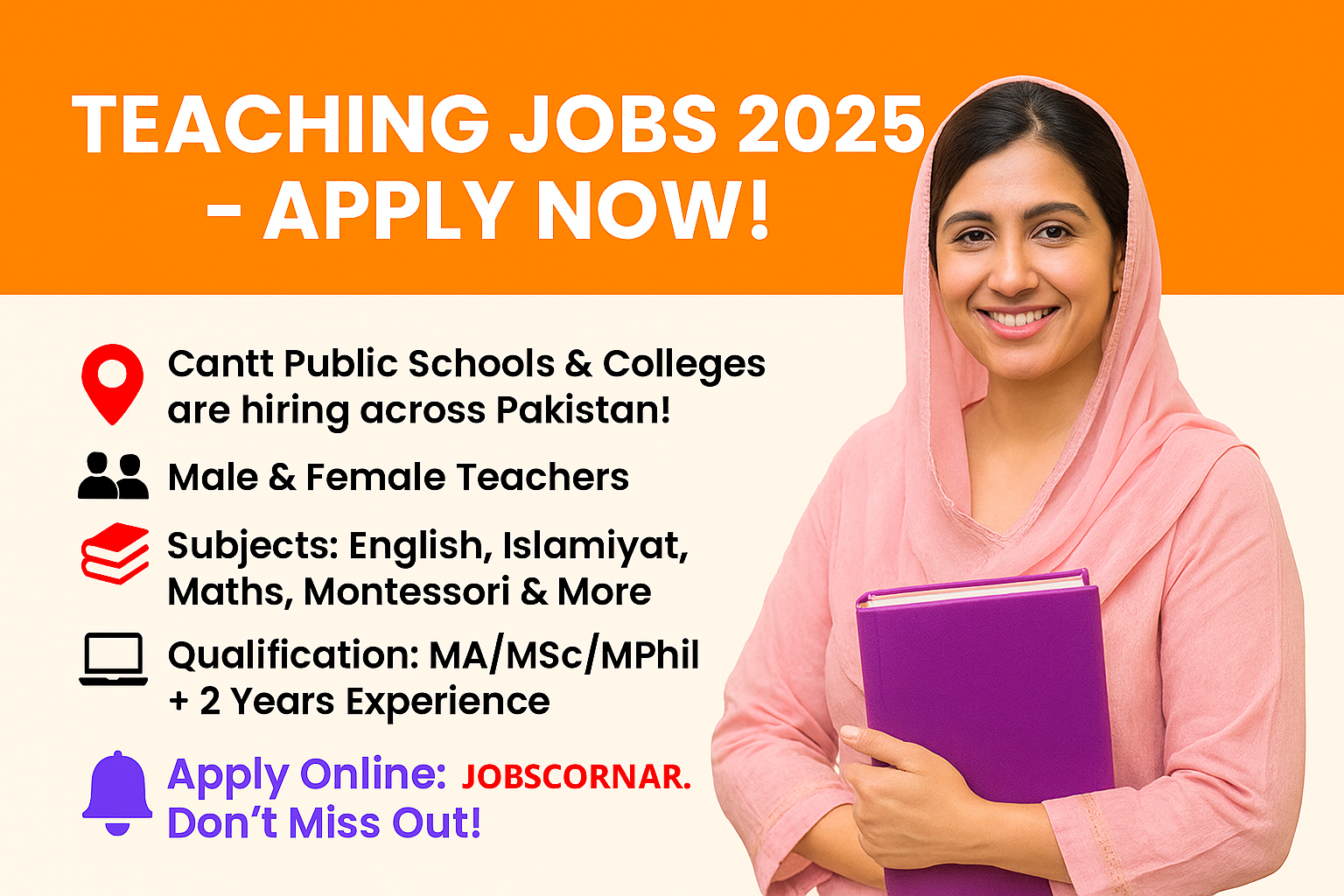 Teaching Jobs at Cantt Public Schools and Colleges are back with fresh openings for male and female candidates across Pakistan. These jobs are a blend of purpose, prestige, and progress.